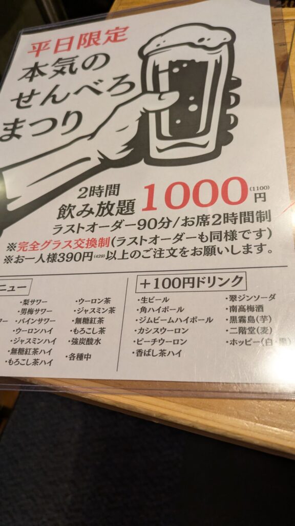 本当に軽く食べ、軽く飲むつもりだったけれど、その店にて、SNSにも上げない、本気のせんべろまつりが開催されていたため、話が変わった。